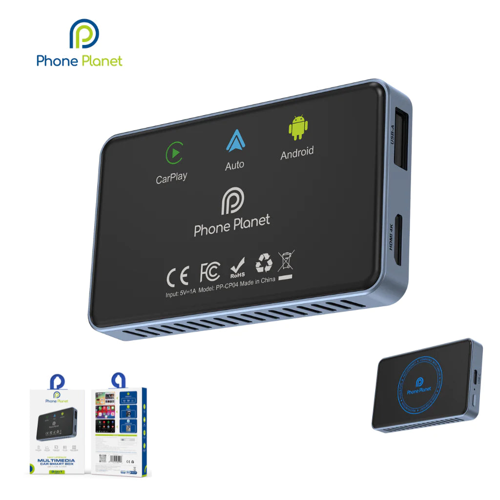 PhonePlanet -PP-CP04 – 4-in-1 Multimedia Car Smart Box CarPlay - Android Auto - HDMI - Screen Mirroring [H] - وصلة كار بلاي - مشغل وسائط متعددة لشاشة السيارة - كفالة 24 شهر